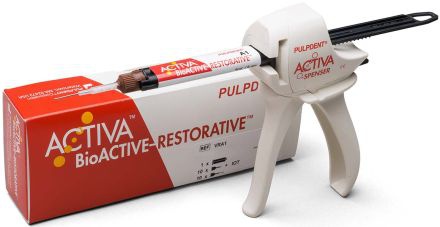 Duálně tuhnoucí leštitelný a estetický bioaktivní materiál poskytující všechny výhody skloionomerů (chemicky se váže na zub, uvolňuje vápník, fosfát a fluoridy) a kompozitů (odolný vůči lomu a abrazi). Neobsahuje žádný Bisphenol A, Bis-GMA ani BPA. Materiál velmi dobře snáší vlhkost a sliny a kontinuálně s nimi reaguje. Balení 5 ml (8 g), 20 x míchací kanyly, 10 x intraorální špičky kovové, 10 x intraorální špičky plastové, aplikační pistole Activa-spenser.