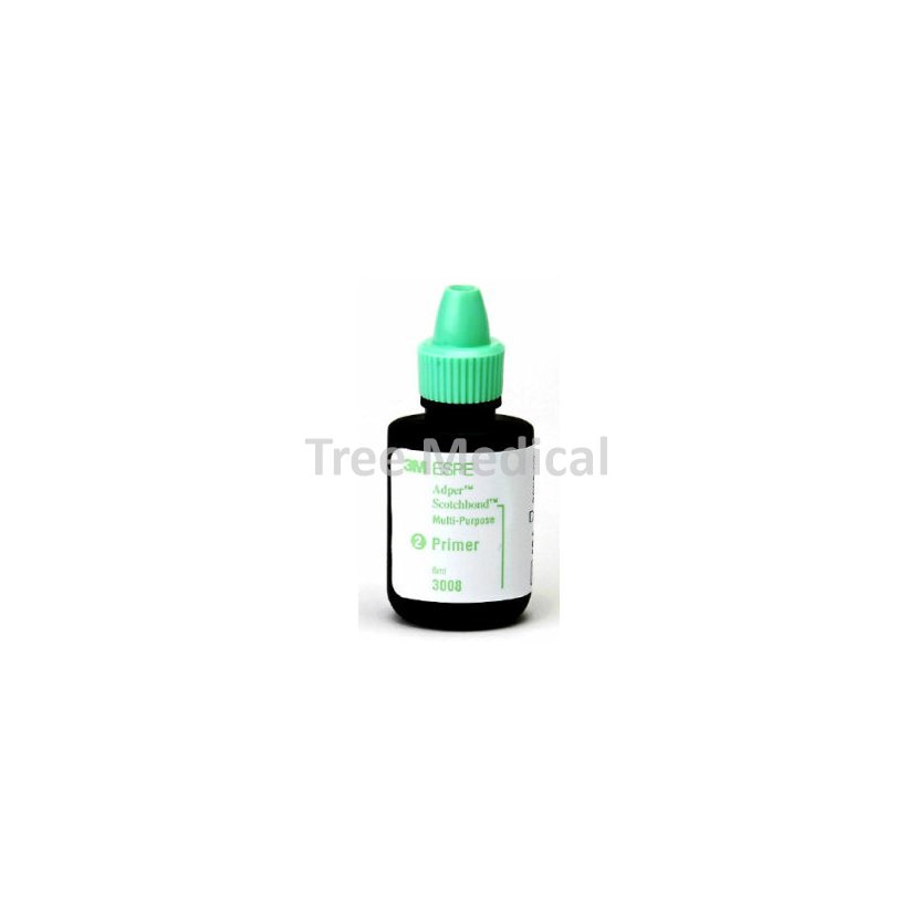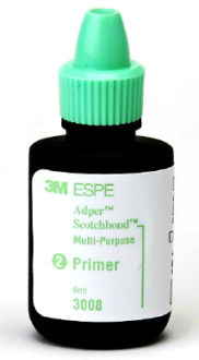3M Adper Scotchbond primer je součástí dvousložkového adhezivního systému 3M Adper Scotchbond Multi-Purpose. Primer Adper Scotchbond multi-purpose usnadňuje smáčení preparovaných zubních tkání. Komplexní dentální duálně tuhnoucí adhezivní systém. Spolehlivé použití v jakékoliv indikaci. Vytváří silnou a pevnou vazbu k suchému i mokrému povrchu. Balení 8 ml primer.
