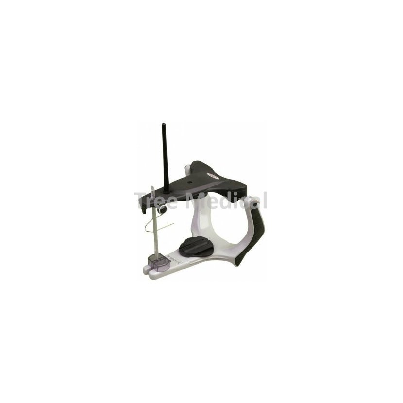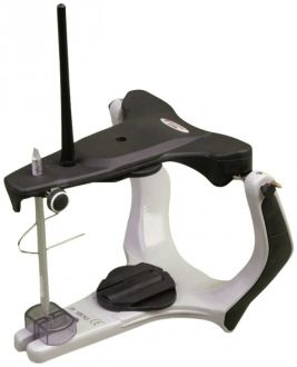 Ekonomický model artikulátoru s kondylárním pohybem. Fixní interkondylární vzdálenost 110 mm, náklon 30 stupňů, Bennetův úhel 15 stupňů.
