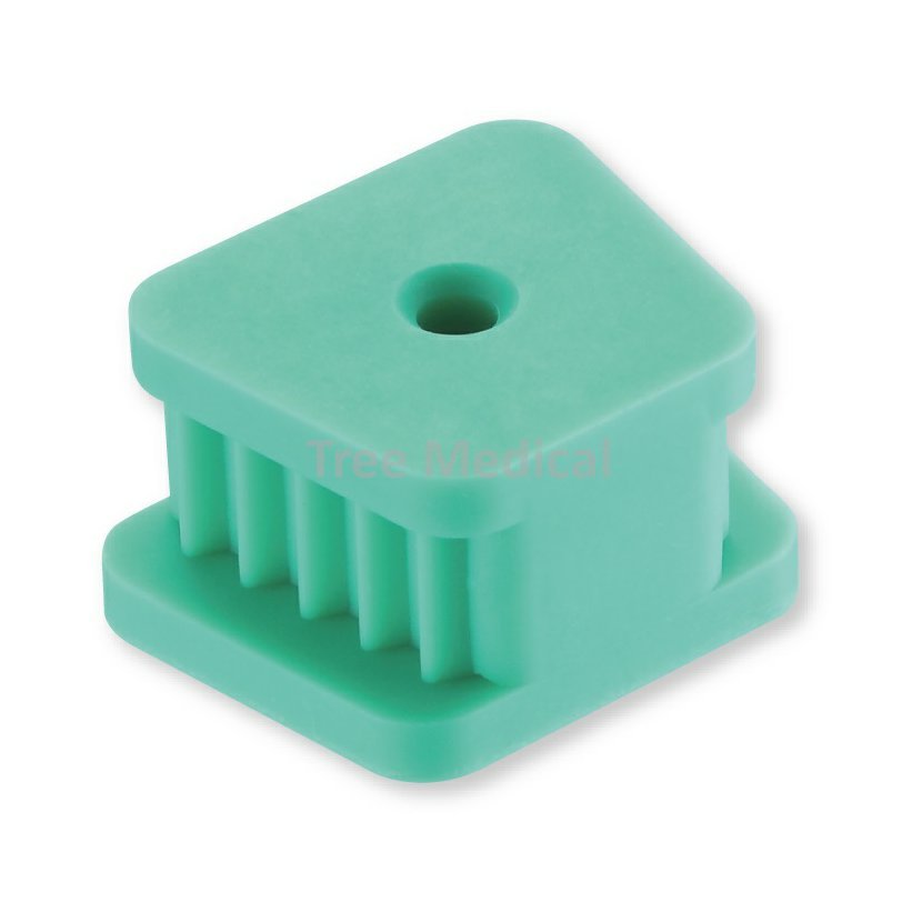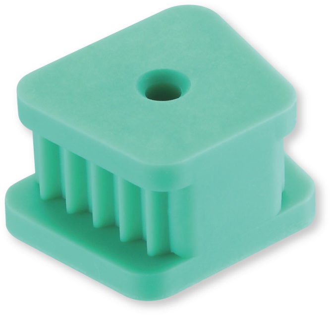 Vyrobeno z chemicky odolného, autoklávovatelného silikonu. Rozměry 30 mm x 25 mm x 20 mm. Barva zelená.