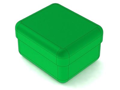Hliníkový box. Rozměr 5 x 4 x 3 cm. Barva zelená.