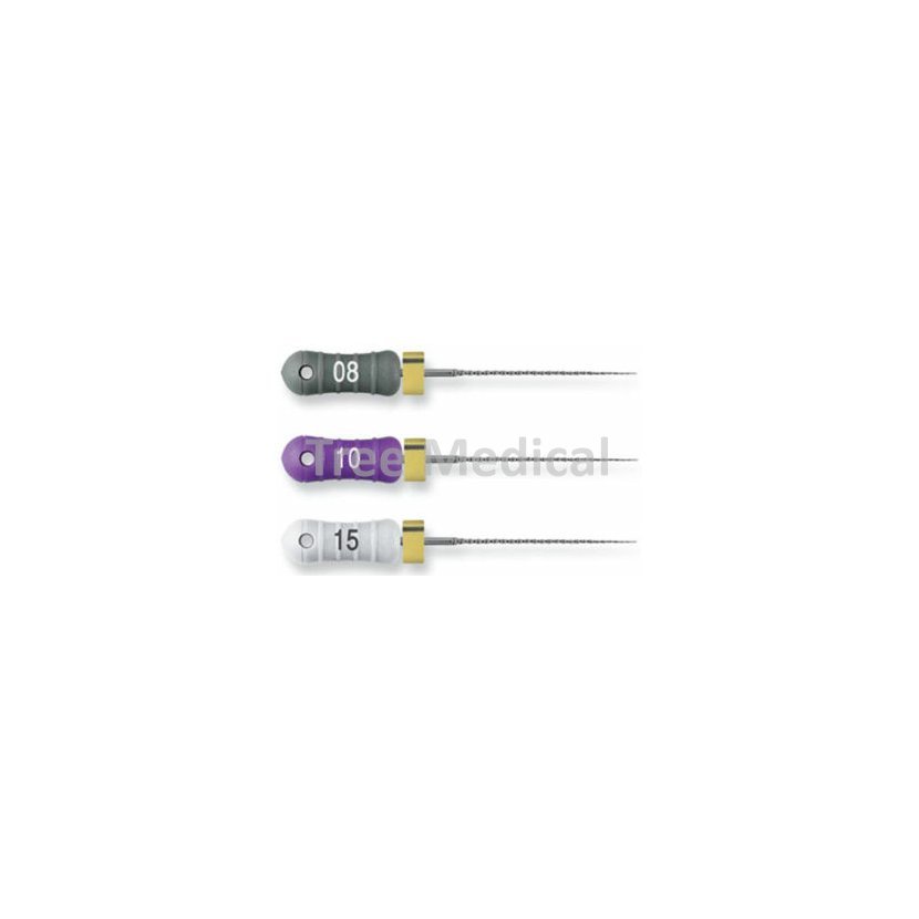 Ruční nástroje na opracování kořenového kanálku. Dosažení odolnosti proti vzpříčení až o 300 %. Kalibrační kroužky pro snadné určení hloubky. Špička ve tvaru pyramidy pro snadnou penetraci. Vysoce leštěné pro odstranění nečistot a hladké zasunutí do kanálu. Čtvercový úsek pro odolnost proti zkreslení a zvýšenou bezpečnost. Balení 6 ks (2 x 8, 2 x 10, 2 x 15).