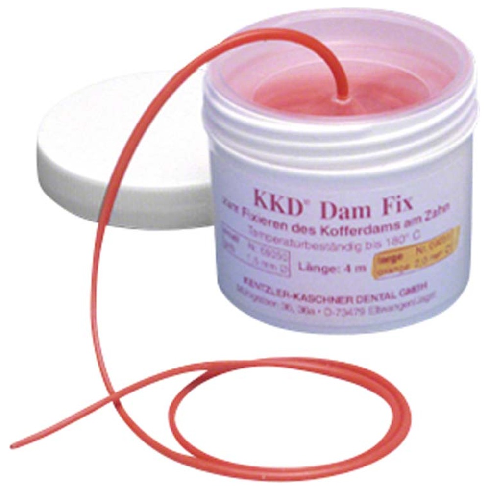 KKD Dam Fix - alternativa ke klasické upínací metodě pomocí spon. Jednorázové použití. V praktické dóze - snadné dávkování. Balení stabilizační vlákno oranžové, silné, průměr 2,0 mm. Délka 4 m.