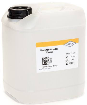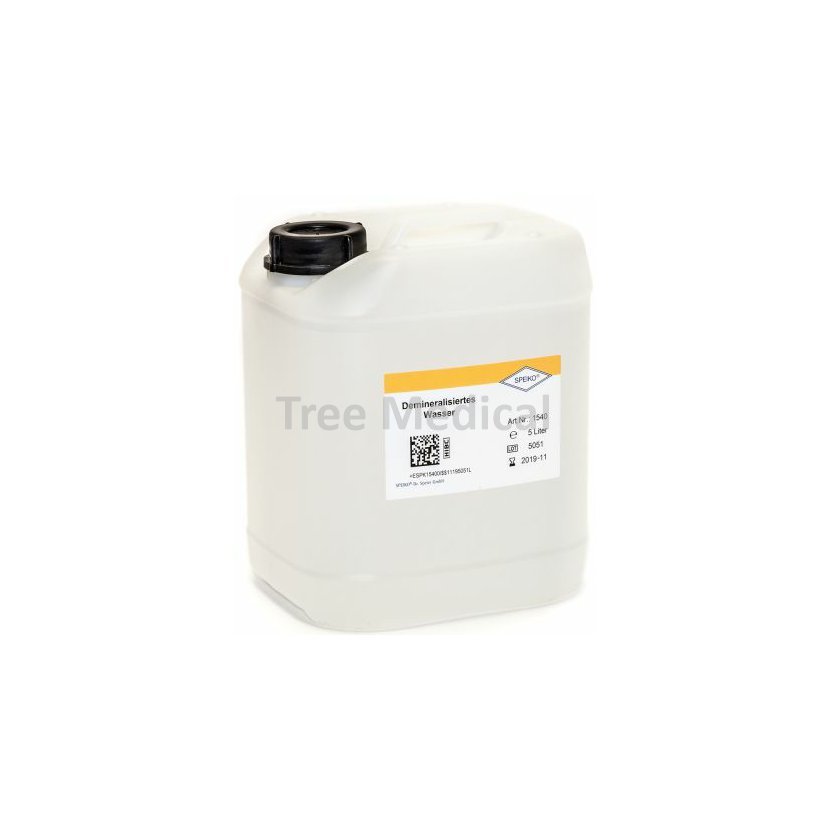Demineralizovaná voda pro použití ve sterilizátoru, opláchnutí sterilních nástrojů resp. použití ve stomatologických přístrojích. Vodivost < 10 µS. Balení 5 l.