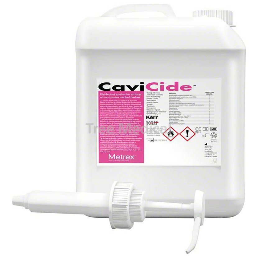 Postřiková dezinfekce na bázi alkoholu (snížený obsah alkoholu na 17%) na povrchy, které nejsou citlivé na alkohol. Ideální prostředek k čištění, dezinfekci a dekontaminaci stomatologických a zdravotnických prostředků s účinkem bakteriocidním, virucidním, fungicidním a tuberkulocidním. Tento výkonný širokospektrální dezinfekční prostředek na neporézní povrchy je účinný proti TB, HBV, HCV, virům, bakteriím (včetně MRSA a VRE) a houbám. Používá se jako vysoce účinná dezinfekce dentálních a zdravotnických prostředků, která je vhodná k okamžitému použití, přičemž skvěle zastoupí hned tři produkty najednou. Čistí, dezinfikuje a dekontaminuje, šetří nejenom čas, ale i peníze. Desident CaviCide je vhodný k použití ve všech zdravotnických zařízeních, kde je nutné dodržovat dezinfekční režim. Balení 5 l.