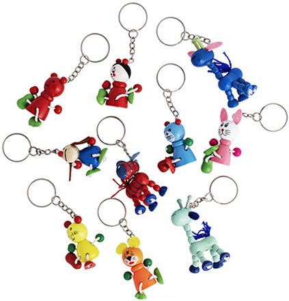 Roztomilá ručně malovaná dřevěná zvířátka jako klíčenky. Balení 24 ks.