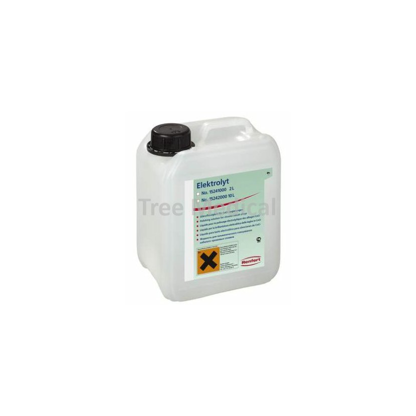Leštící roztok na galvanické leštění opískovaných odlitků a konstrukcí zubních náhrad z vysokotavitelných slitin. Balení 2 l.