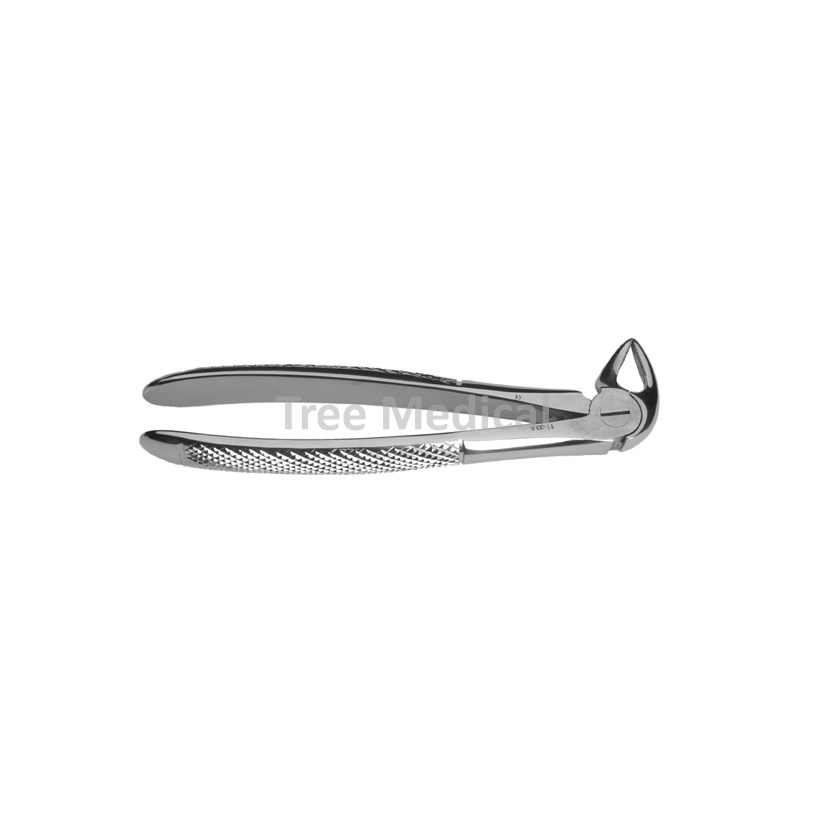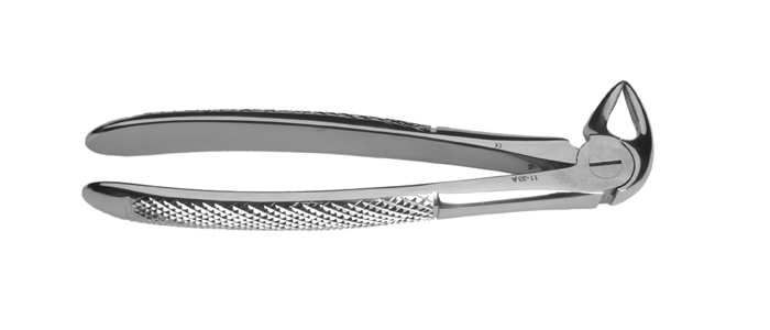 Dolní kořenové extrakční kleště s precizně zakončenými zobáky s protiskluzovým profilem, s teflonovým kroužkem v kloubu.