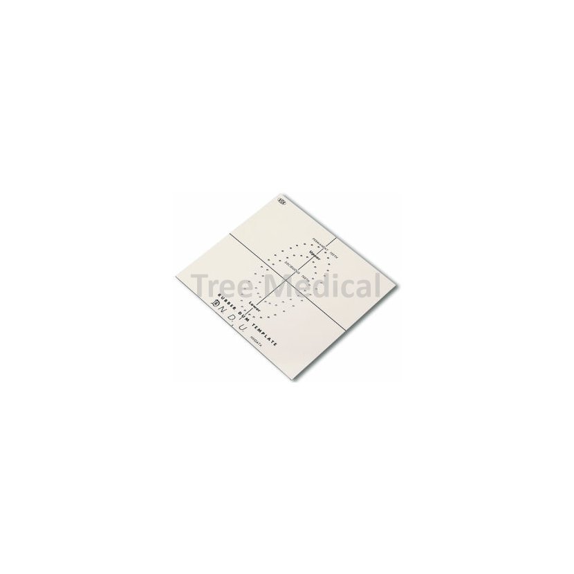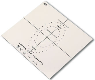Šablona ke kofferdamu na zakreslení děr před perforací.