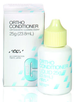 GC Fuji Ortho je chemicky tuhnoucí skloionomerní fixační cement určený k lepení zámků. Vynikající vazba dokonce i ve vlhkém prostředí, snadná aplikace, jednoduché snímání ortodontických breket i kroužků bez poškození skloviny. Uvolňování fluoridů zamezuje vzniku zubního kazu a bílých skvrn. V případě potřeby se snadno a bez následků odstraní. Balení 23,8 ml (25 g) kondicionér.