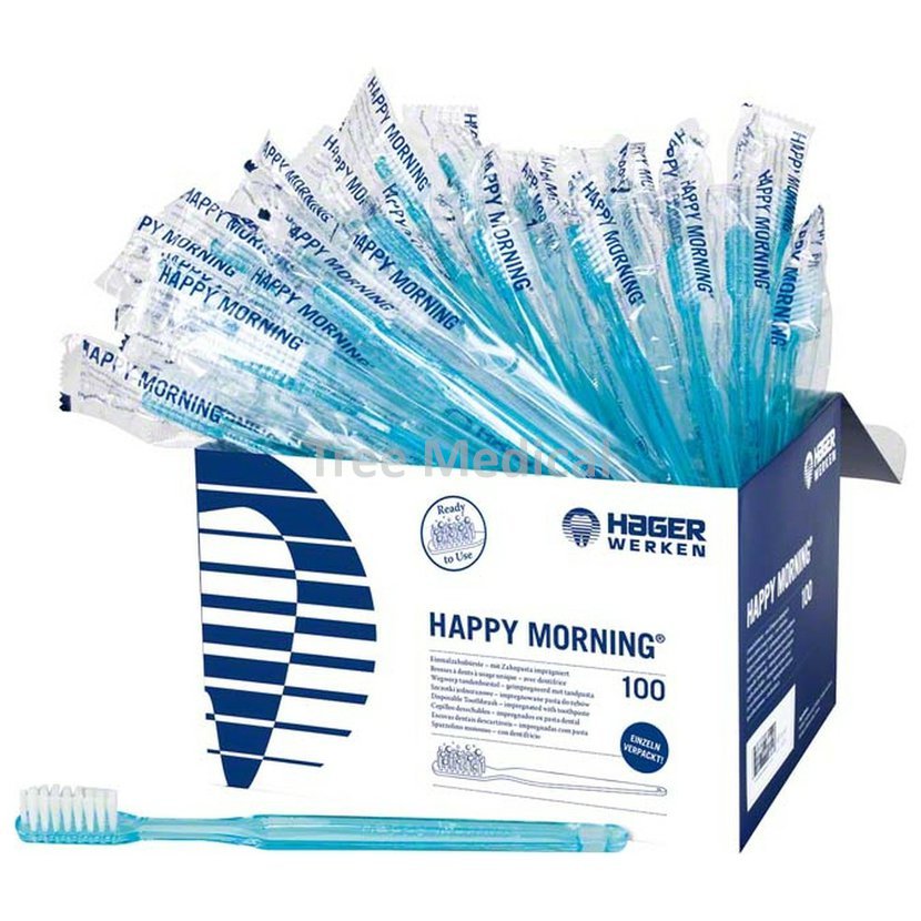 Jednorázové zubní kartáčky s pastou, sterilně jednotlivě balené. Balení 100 ks.