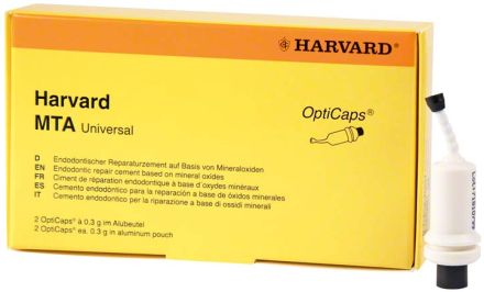 RTG kontrastní endodontický opravný MTA cement v kapslích. Jednoduché smíchání, excelentní jemná konzistence, výborná adheze k dentinu. Balení 2 x 0,3 g.