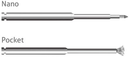 Titanový čistící kartáček pro inovativní a precizní odstranění biofilmu z titanových povrchů i v těžce přístupných místech při chirurgické léčbě peri-implantitidy. Na rozdíl od rotujících diamantových nástrojů nehrozí oslabení těla implantátu a minimalizují se odbroušené částečky titanu ve tkáni.