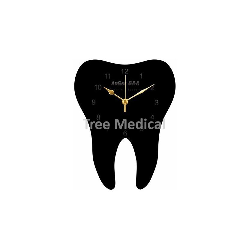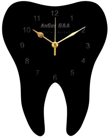 Barevné nástěnné plexi hodiny ve tvaru zubu.