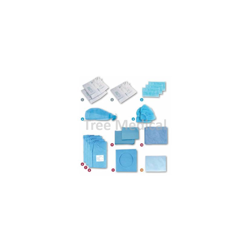 Set stávající z 20 komponentů vhodný na všechny druhy chirurgických a implantologických zákroků. Ochrana ošetřujícího, asistenta, pacienta a operačního prostředí. Všechno sterilizované etylenoxidem.