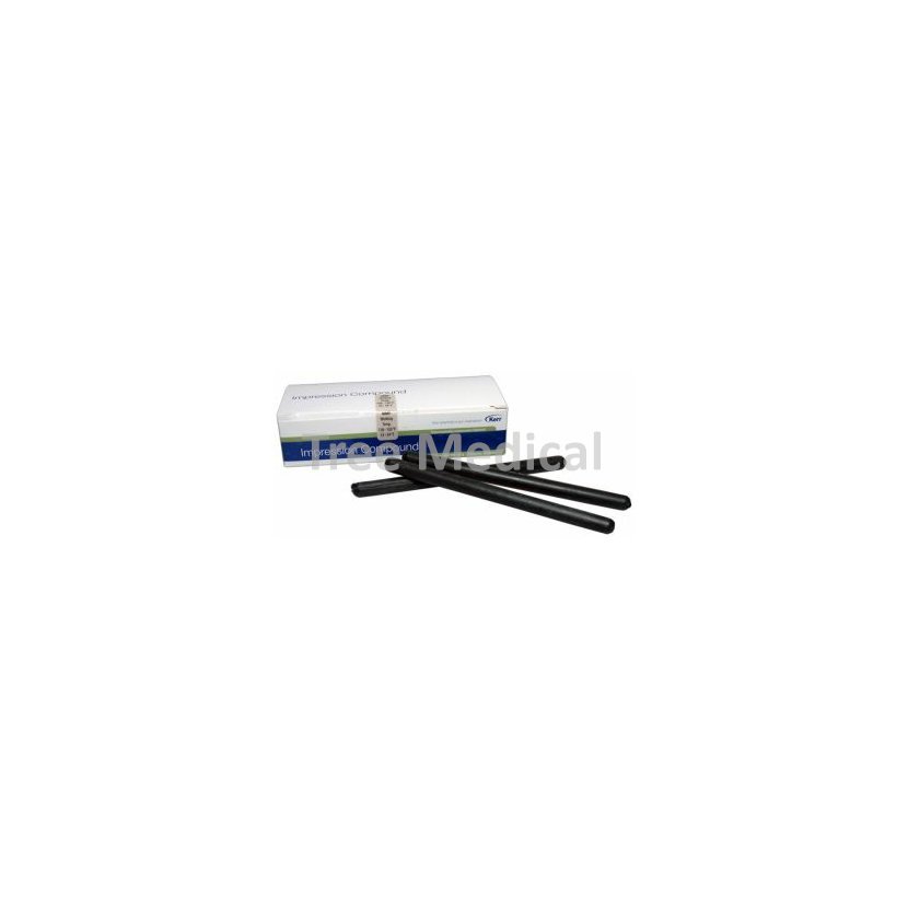 Termoplastická otiskovací hmota v tyčinkách pro otisky v měděné obroučce a pro doplnění k okrajům otiskovací lžíce. Zelená barva má kontrolovanou pracovní teplotu 50°C. Balení 15 tyčinek, 113 g.
