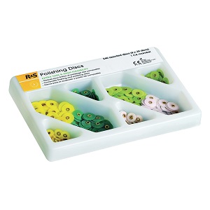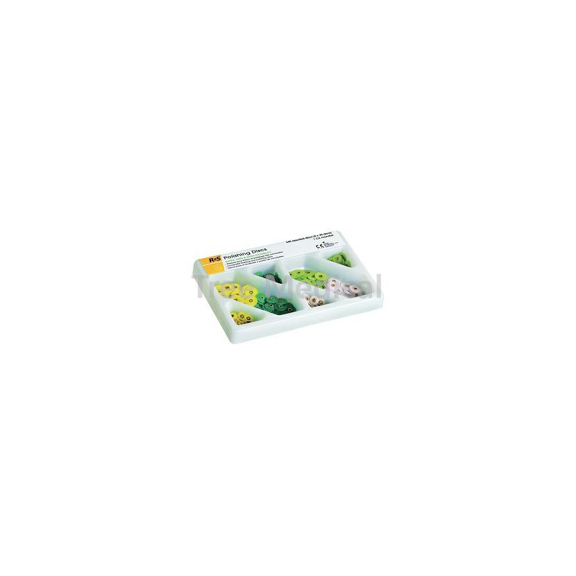 Sada leštících disků ve 2 různých průměrech: 9,5 mm a 12,7 mm a ve 4 zrnitostech: hrubé a střední pro hrubé opracování, jemné a extra jemné pro konečnou úpravu a leštění. Velmi flexibilní disky, které se přizpůsobí zubu. Použití kompletního systému zaručuje lesk stejný nebo vyšší než u přirozeného zubu. Balení: 240ks