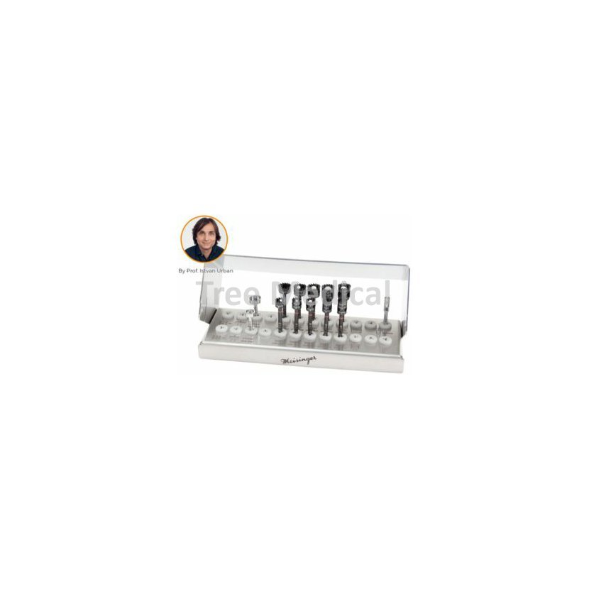 Set s trepany s vybranými délkami pro bezpečnou a jednoduchou extrakci kostních válečků pro augmentaci kosti podle Dr. Istvan Urban. Černý povrch bez odrazů světla, značení hloubky pro výbornou kontrolu odběru kostního štěpu. 5 různých délek (3,0 mm, 4,0 mm, 5,0 mm, 6,0 mm, 7,0 mm) a 2 průměry (5,0 mm a 7,0 mm).