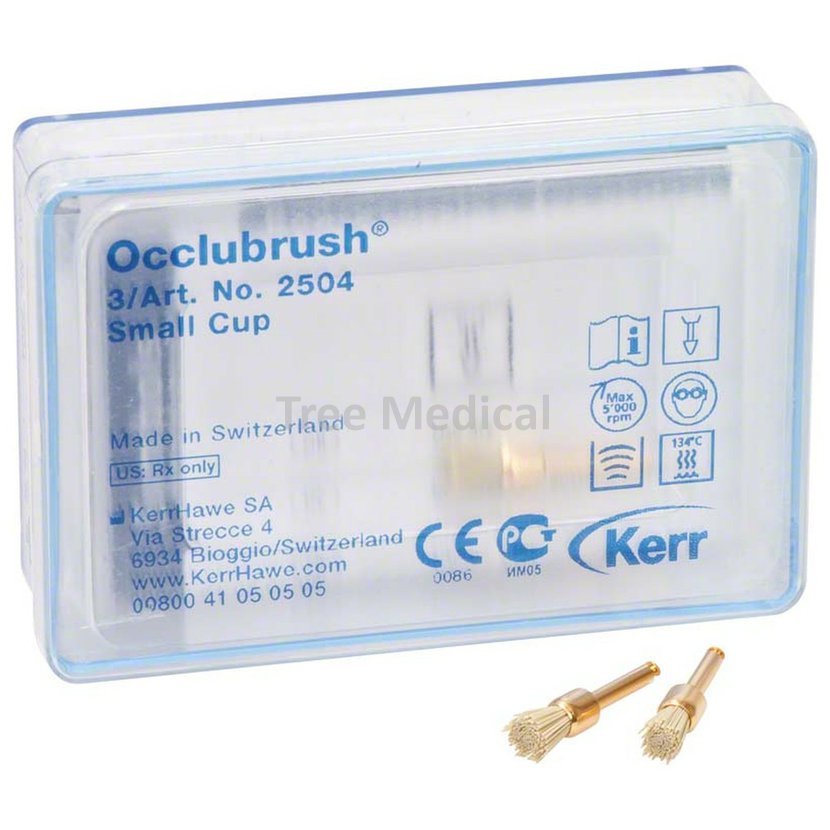 Occlubrush jsou kartáčky pro předleštění a leštění pro vysoký lesk všech okluzálních restaurací pouze jedním krokem. Leštící částice jsou již zabudovány ve štětinách, tudíž není nutné použití leštící pasty nebo spraye. Sterilizovatelné do 134 °C, znovu použitelné. Dlouhá životnost. Balení 3 ks.