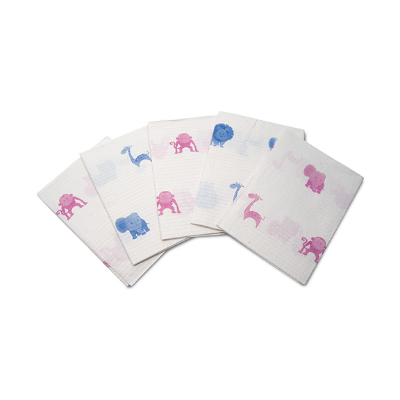 3vrstvé ochranné roušky kombinované z 2 vrstev pravé celulózy a 1 vrstvy plastu. Vnitřní struktura jako plástev medu - vynikající nasákavost. Dětský motiv - tisk v růžové nebo modré barvě. Balení 500 ks.