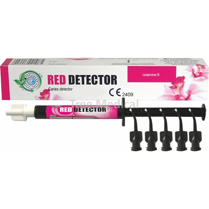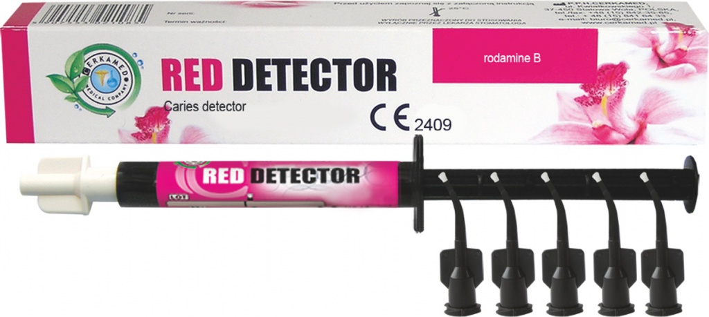 Červený indikátor zubního kazu na glykolové bázi ve stříkačce. Mimořádná přesnost umožňuje zachovat maximum zdravé tkáně. Balení 2 ml, aplikační koncovky.