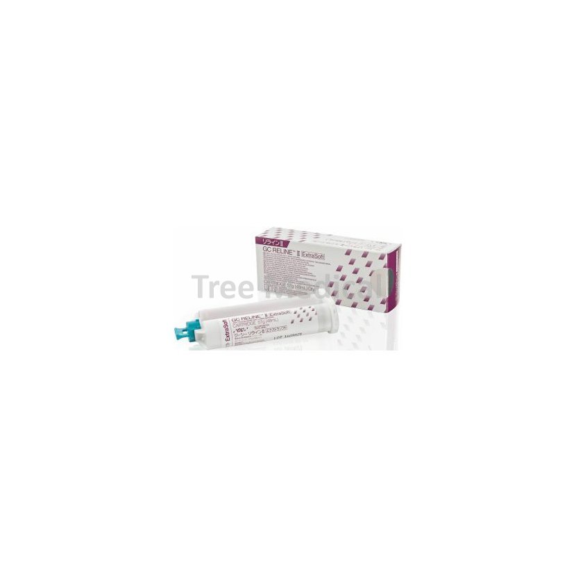 Dočasný měkký silikonový materiál v kartuši pro podkládání. GC Reline II Extra Soft pomáhá především normalizovat podrážděnou tkáň a podporuje proces hojení tkáně po extrakcích nebo zavedení implantátů. Může být umístěn na dobu několika dní až týdnů. Balení 57 g.