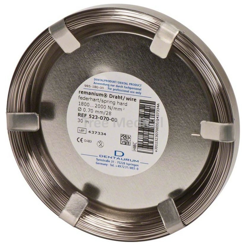 Drát z nerezové chrom-nikl oceli. Využití v čelistní ortopedii, ortodoncii a maxilofaciální chirurgii. Pevnost v tahu 1800 - 2000 MPa. Balení 30 m.