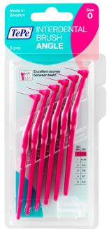 Mezizubní kartáčky, které Vám umožní vyčistit všechny mezizubní prostory. Díky úzké, šikmé hlavě kartáčku a dlouhému, plochému držátku umožňují čištění ve všech mezizubních prostorech. TePe Angle je k dispozici v šesti velikostech. Balení 6 ks.
