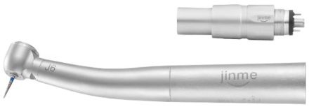 Turbína s připojením na NSK rychlospojku. LED světlo 15000LUX. Výkon 20W. Zpětný ventil proti nasátí. 3- bodový spray. Hlučnost 60dB. kvalitní německé ložiska.
