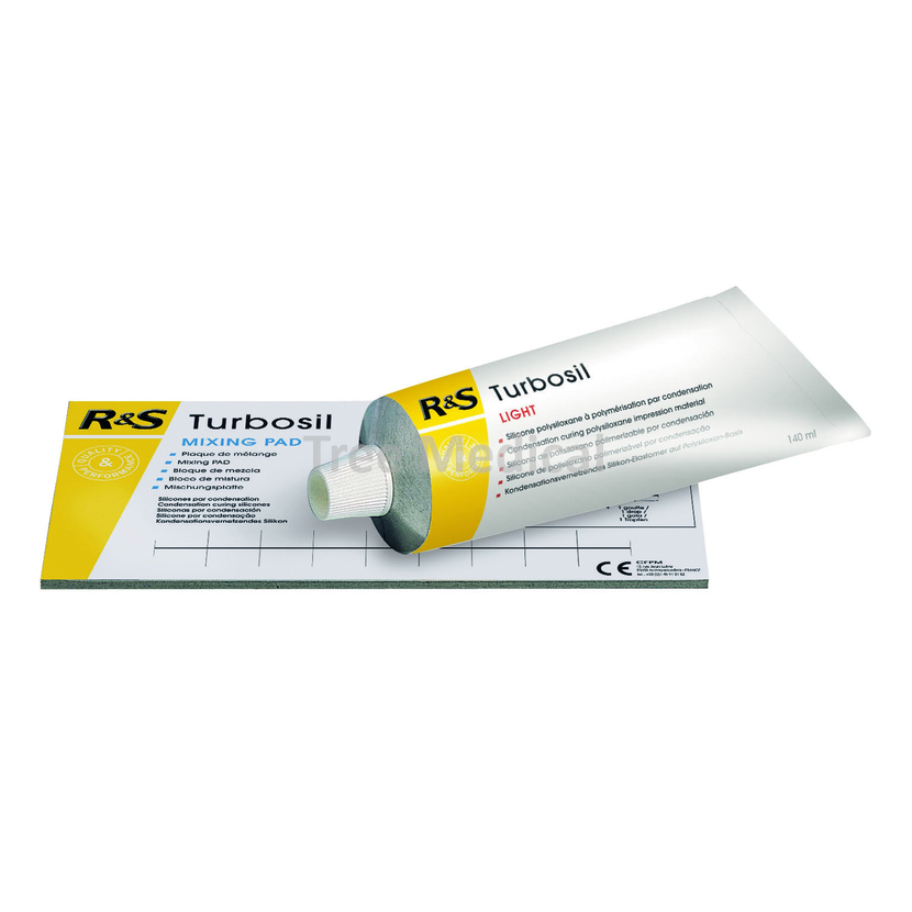 Kondenzační vytvrzovací polysiloxanový silikon s nízkou viskozitou. Turbosil Light umožňuje získat vysoce přesné otisky a nabízí věrnou reprodukci detailů. Vynikající tixotropie, která zabraňuje stékání produktu. Ideálně použití s ??Turbosil Putty. Celková doba zpracování (včetně doby míchání): 2 min. Doba tuhnutí od konce míchání: 5 min. Aroma: Neutrální. Žlutá barva. Balení: 140ml