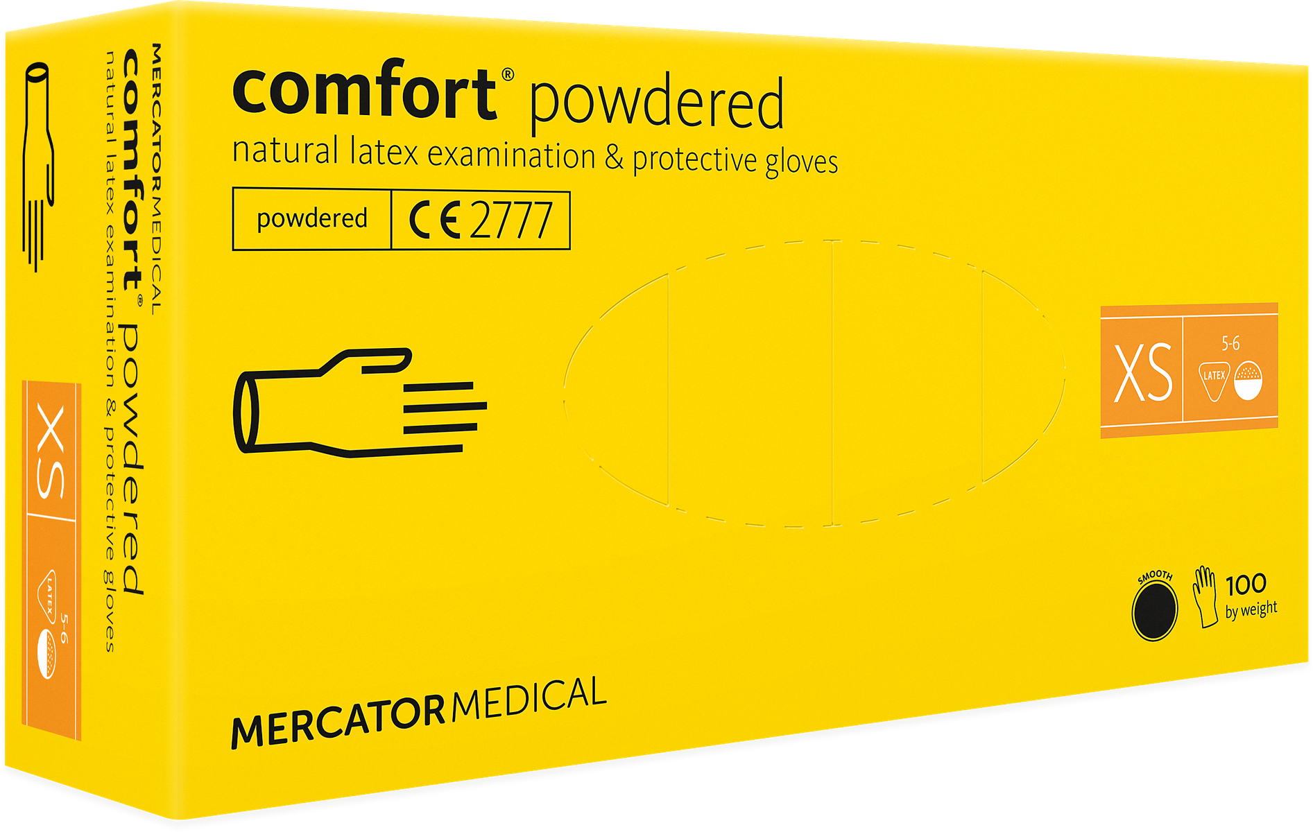 Vyšetřovací latexové rukavice Comfort. Rukavice jsou pudrované, což snižuje potivost rukou. Balení 100 ks.